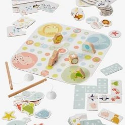7 jeux simples et variés pour éveiller la curiosité des petits ! Un mémory, un loto, des dominos, une pêche magnétique, un puzzle des chiffres, un jeu des couleurs et un jeu des petits chevaux initieront les enfants dès 2 ans aux plaisir des jeux de société !