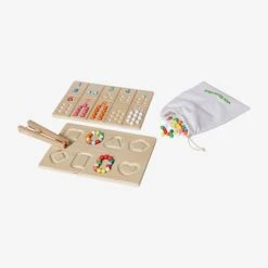 - Contient : 110 billes, 2 plateaux – 1 plateau avec formes pour placer les billes au début du jeu, 1 plateau avec chiffres pour trier les billes, 1 pince et 1 pochon de rangement