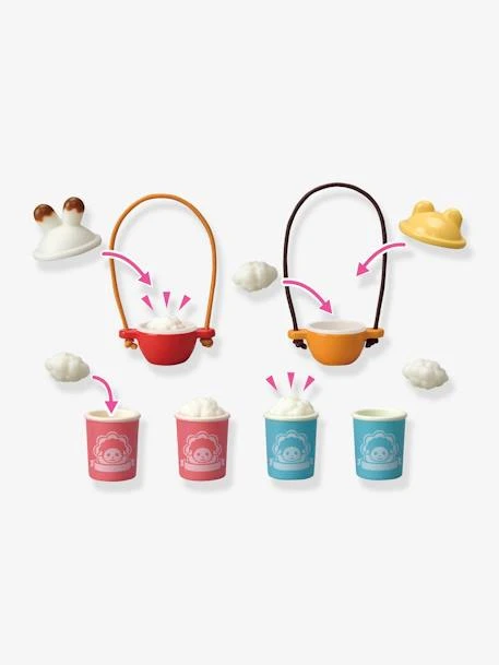 Ce set contient la maman mouton dans une tenue exclusive, un tricycle et un stand de popcorn ambulant. La poignée de la machine à popcorn tourne pour faire rebondir le popcorn de haut en bas.