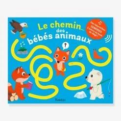 Aide les animaux à trouver le bon chemin pour rejoindre leurs parents : Après avoir écouté la consigne sonore, l’enfant suit du bout du doigt le chemin qui mène l’animal à son papa ou à sa maman. C’est le bon chemin ? Surprise ! un son rigolo se déclenche ! Un livre sonore avec des consignes à écouter, des chemins à trouver et des sons à écouter !